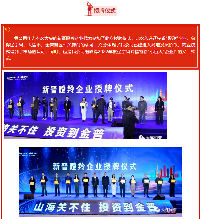 大連恒亞儀器儀表有限公司作為瞪羚企業(yè)代表參加授牌儀式!