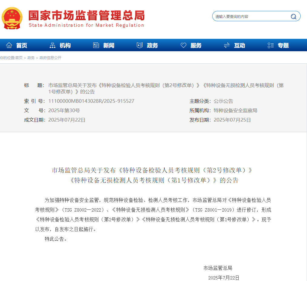 《特種設(shè)備檢驗人員考核規(guī)則(第2號修改單)》(TSG Z8002—2022)